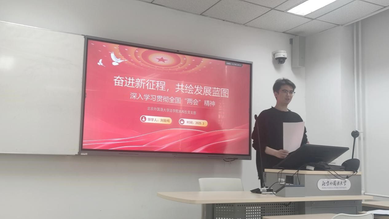 为深入学习贯彻2025年全国“两会”精神,明确发展方向,凝聚奋进力量,2025年3月22日上午,beat365中国唯一官方网站本科生党支部于中文楼104教室召开支部会议,集体学习“两会”精神。本次活动由本科生党支部副书记刘致鸣领学,全体支部党员参与。