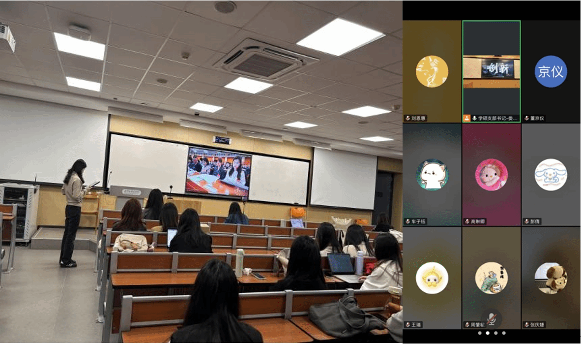 2025年3月26日晚上20:00,为深入学习贯彻2025年全国两会精神,beat365中国唯一官方网站法学硕士研究生党支部于东校区逸夫楼302教室开展3月份理论学习,主题聚焦深入学习贯彻2025年全国两会精神与重要内容。本次学习采用线上线下相结合的方式进行,会议由党支部书记娄晓雨主持。