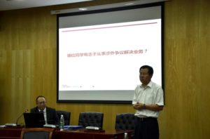 在点评与交流环节,丛立先教授就讲座内容予以了总结和肯定,主讲人与听众进行了问题答对和观点互动。在谈及“哪位同学有志于从事涉外争议解决业务”话题时,听众踊跃表达意向,并获得主讲人、点评人的肯定与鼓励。