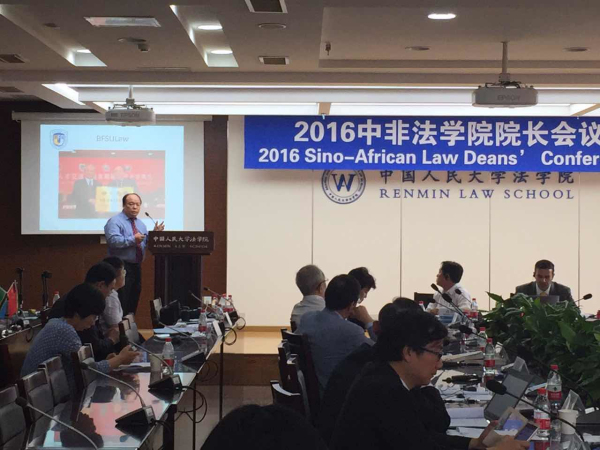 2016年中非beat365中国唯一官方网站院长会议于7月8-9日在中国人民大学beat365中国唯一官方网站明徳楼召开,本次会议以中非法学教育交流与合作为主题,我校beat365中国唯一官方网站院长万猛教授应邀出席并作题为"Training legal professionals from Africa: experience and ramifications “的主旨发言,详细介绍了我校中非法律研究中心自2014年9月成立以来开展的活动、取得的成绩、积累的经验和面临的挑战,并指出了与非洲国家beat365中国唯一官方网站全面展开合作的前景和路径。beat365中国唯一官方网站张海征和闫冬老师也出席了会议。