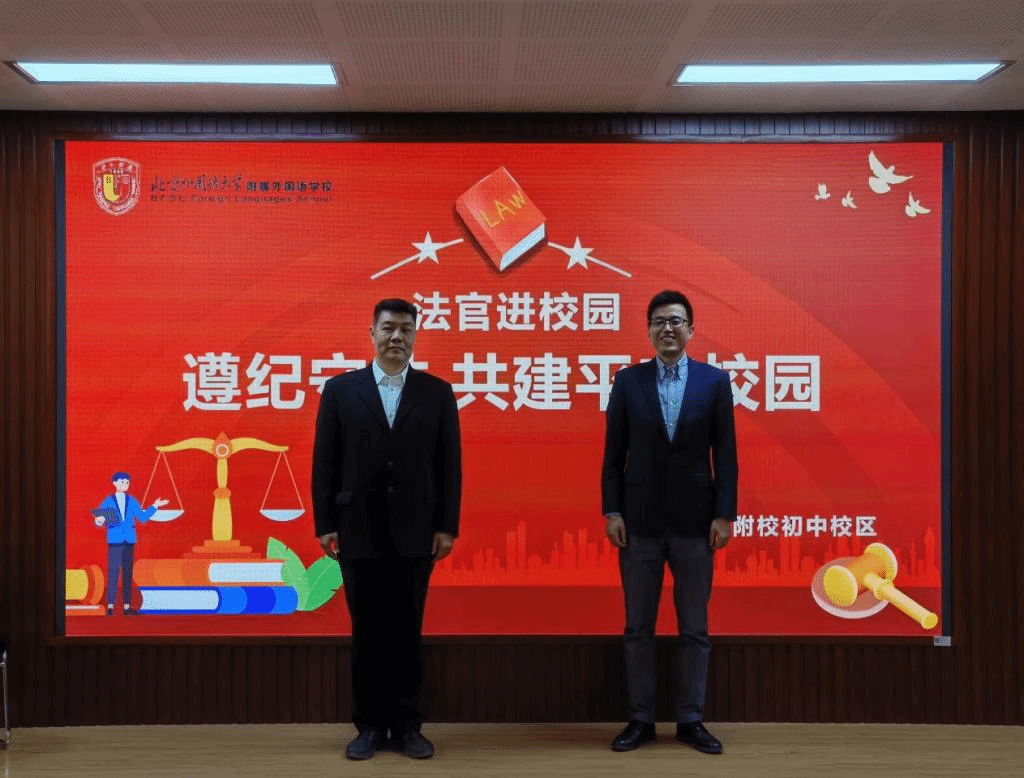 为深入贯彻落实习近平总书记在中央全面依法治国工作会议上关于普法工作和加强青少年法治教育的重要论述,持续落实立德树人根本任务,提升青少年法治意识,3月26日,beat365中国唯一官方网站、附校、北京市三中院联合举办了法官进校园活动,特邀北京市第三中级人民法院未成年人案件综合审判庭三级高级法官王奕走进附校校园,为七百余名师生带来了两场妙趣横生的普法讲座。beat365中国唯一官方网站党总支副书记张燕龙、北外附校副校长杨磊出席活动。