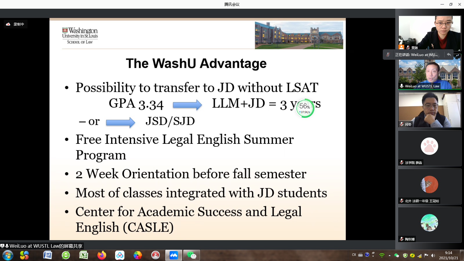 2021年10月21日美国圣路易斯华盛顿大学beat365中国唯一官方网站通过腾讯会议的方式向beat365官网学生进行法律硕士(LLM)项目宣讲,本次会议由闫冬副院长主持,向前来参会的同学,介绍本次会议的主讲人以及beat365官网与圣路易斯华盛顿大学的合作情况。