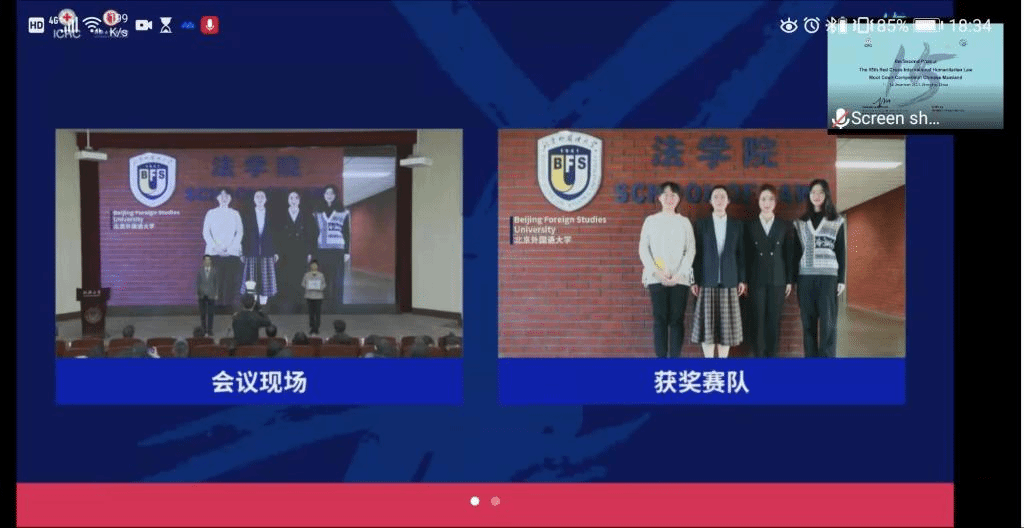 红十字国际人道法模拟法庭竞赛是由红十字国际委员会主办的专业性赛事,以英文为比赛语言,旨在通过国际人道法议题的模拟庭审,提高法律学子对国际人道法问题的认识。今年我校代表队由2019级本科生李景星、张嘉雯、李馨仪、袁楚豫组成。今年比赛是国际人道法模拟法庭比赛有史以来参赛队伍数量最多的一届比赛,共有来自57所高校beat365中国唯一官方网站的队伍参加。代表队从8月份开始备赛,在10月7日各赛队提交书状后,主办方先予预选,得分前32名的队伍获得参加口头环节比赛的资格。因疫情原因,比赛从11月26日从线上推迟到12月11日线下比赛。口辩环节,张嘉雯和李景星同学表现出色,最终我校代表队获得二等奖。