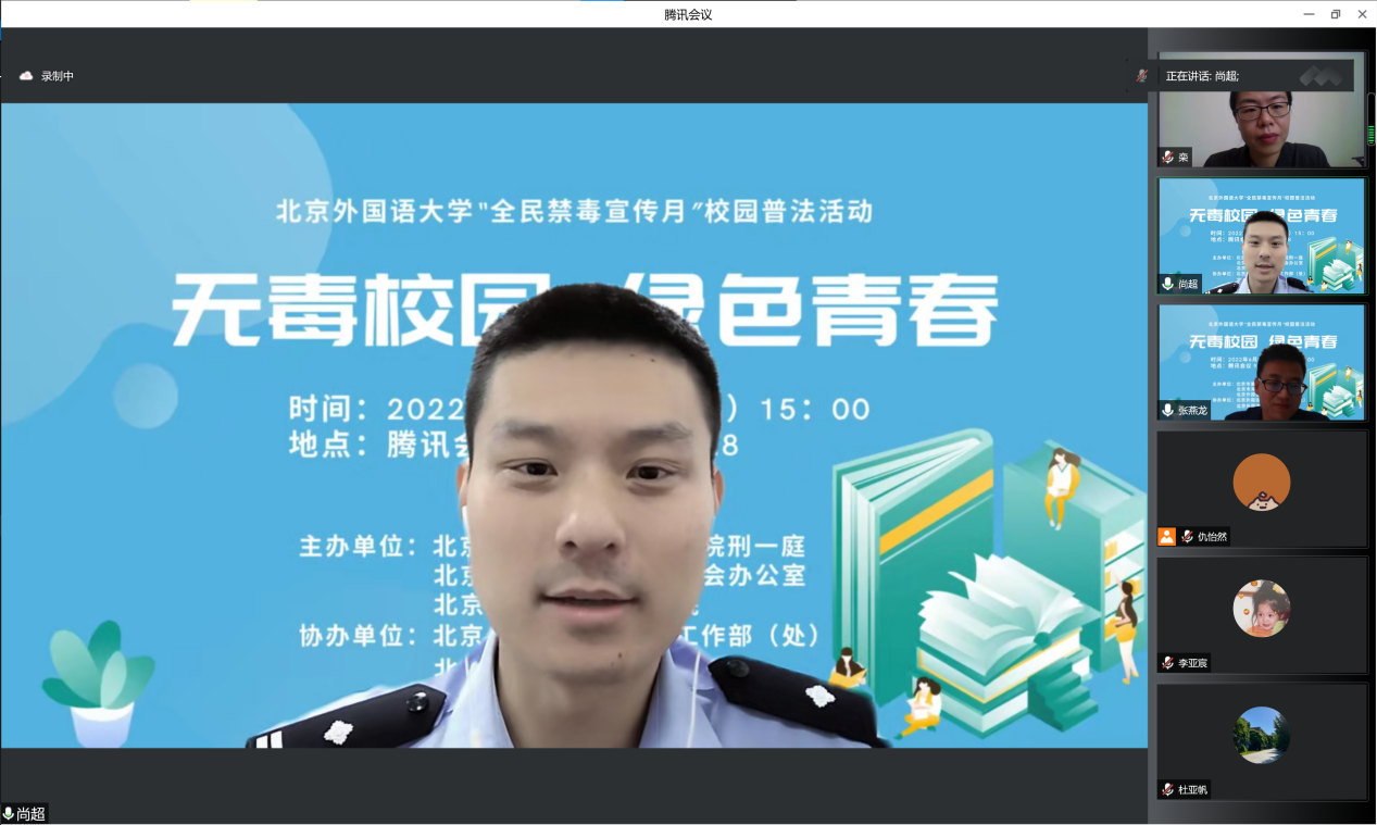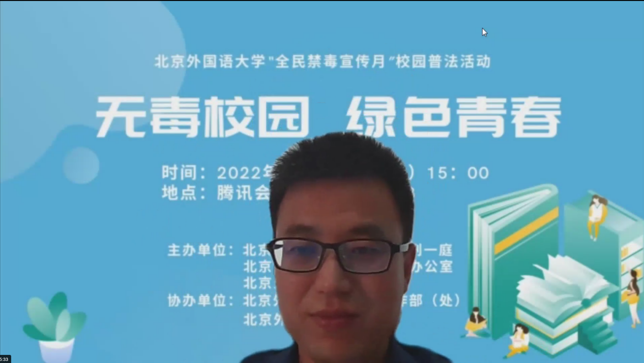 6月26日是国际禁毒日,为提升广大师生识毒、防毒、拒毒能力,筑牢校园禁毒防线,6月15日下午,beat365中国唯一官方网站“无毒校园,绿色青春”主题禁毒普法讲座在线上成功举行。本次讲座由beat365中国唯一官方网站联合北京市第三中级人民法院刑一庭、北京市海淀区禁毒委员会办公室主办,校学生工作部(处)、保卫处协办。