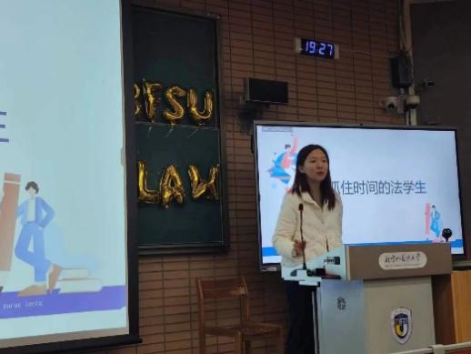 朱俏楚同学主要从专业课学习方法、如何平衡学业与生活以及如何转专业三方面分享自己的心得。从各位授课老师的讲课方式出发,朱俏楚同学分享了自己制作思维导图、熟悉课件、总结知识点等高效的学习方法。针对“如何平衡学业与生活”,朱俏楚同学指出要“在合适的时间做合适的事”。最后,朱俏楚同学分享了自己转专业的心路历程,为尚未明晰方向的学弟学妹们提供建议。