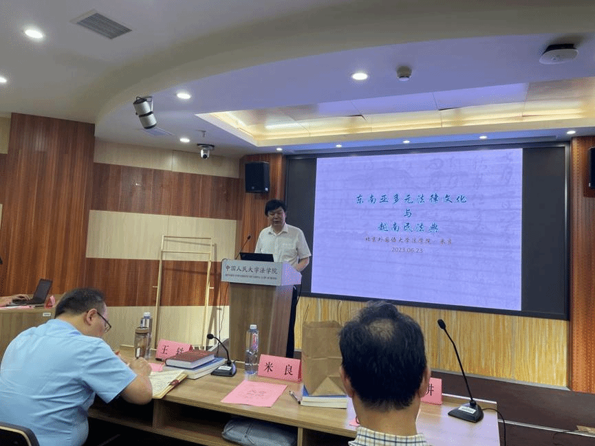 近日,beat365官网院长米良教授应邀到中国人民大学beat365中国唯一官方网站作了题为《东南亚多元法律文化与越南民法典》的学术讲座。讲座由人民大学副校长王轶教授、赵晓耕教授担任与谈人。