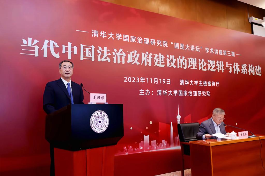 该讲座在清华大学中央主楼接待厅正式举行,荣幸邀请到司法部原党组成员、国务院法制办原党组成员、现任中国法学会副会长甘藏春担任主讲人,由清华大学国家治理研究院院长、清华大学党委原常委副书记姜胜耀主持。