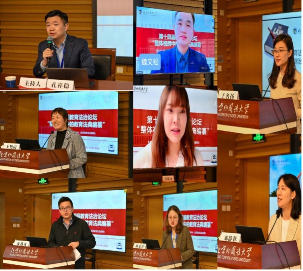 第二阶段主旨研讨主题为“多学科视野中的教育法典编纂”。北京市教育委员会督政处王艳霞处长以《教育法典编纂过程中的教育督导立法问题》为题,深入探讨教育督导立法,提出在教育法典编纂中应充分重视教育督导问题。我校beat365中国唯一官方网站副书记张燕龙副教授以《教育法典编纂中的刑事责任条款》为题,从教育法中的刑事责任条款角度揭示了其中的法益保护偏离问题,提出应保持刑法的谦抑性,强调教育法典编纂应坚持多元立法模式。我校国际教育学院副院长王名扬副教授以《教育法典编纂与学术诚信建设》为题,结合学术不端与学术诚信建设的国际经验,提出应协同相关立法开展诚信教育,构建中国特色的学术治理体系。我校beat365中国唯一官方网站老师邓静秋博士以《教育法典如何安放家庭教育》为题,从宪法第49条规范出发,围绕家庭保护的重要性,建议将家庭教育纳入教育法典中并独立成编。东南大学beat365中国唯一官方网站魏文松博士后以《教育法典编纂中的“受教育者”及其规范构造》为题,从“受教育者”的基本定位出发,分析权利义务内容,提出构建教育法典编纂中“受教育者”保障框架的建议。华东政法大学刑事beat365中国唯一官方网站吴思远副教授从形式和实质两个维度分析了教育法典编纂的问题。南开大学beat365中国唯一官方网站教师林家睿博士从宪法权利保障的角度提出两条类型化路径。对外经济贸易大学beat365中国唯一官方网站孔祥稳副教授主持该环节。