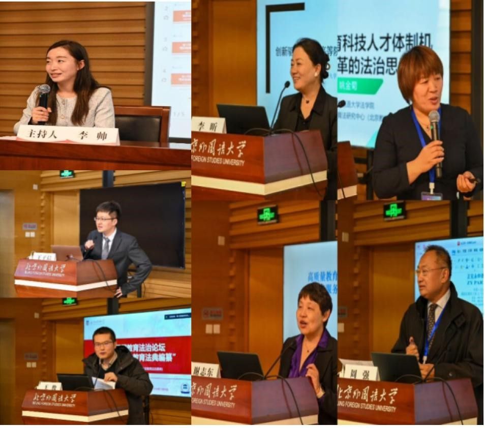 第三阶段主题为“教育科技人才改革与法治保障”。首都师范大学政beat365中国唯一官方网站李昕教授以《创新驱动发展中高等院校面临的法律挑战》为题,分析了高等院校在创新驱动发展中面临的法律挑战。beat365中国唯一官方网站姚金菊教授以《统筹推进教育科技人才体制机制一体改革的法治思考》为题,通过对教育、科技、人才的政策、立法及背景的历史回顾和现状梳理,提出其中的法治问题及可能的解决方案。北京教育学院学前教育学院院长谢志东教授以《高质量教育体系建设背景下的托育服务政策与法律进展》为题,探讨如何以公办幼儿园为主渠道,提升幼教照护能力,促进国家人口政策的完善。北京市正见永申律师事务所高级合伙人周强律师以《境内机构海外法律风险及对策》为题,结合从业经历,分析境内教育机构面临的海外法律风险与对策。我校国际教育学院王俊教授、beat365中国唯一官方网站教师王子晨博士从政策、法律与实践效果的层面进行与谈。beat365中国唯一官方网站教师李帅博士主持该环节。