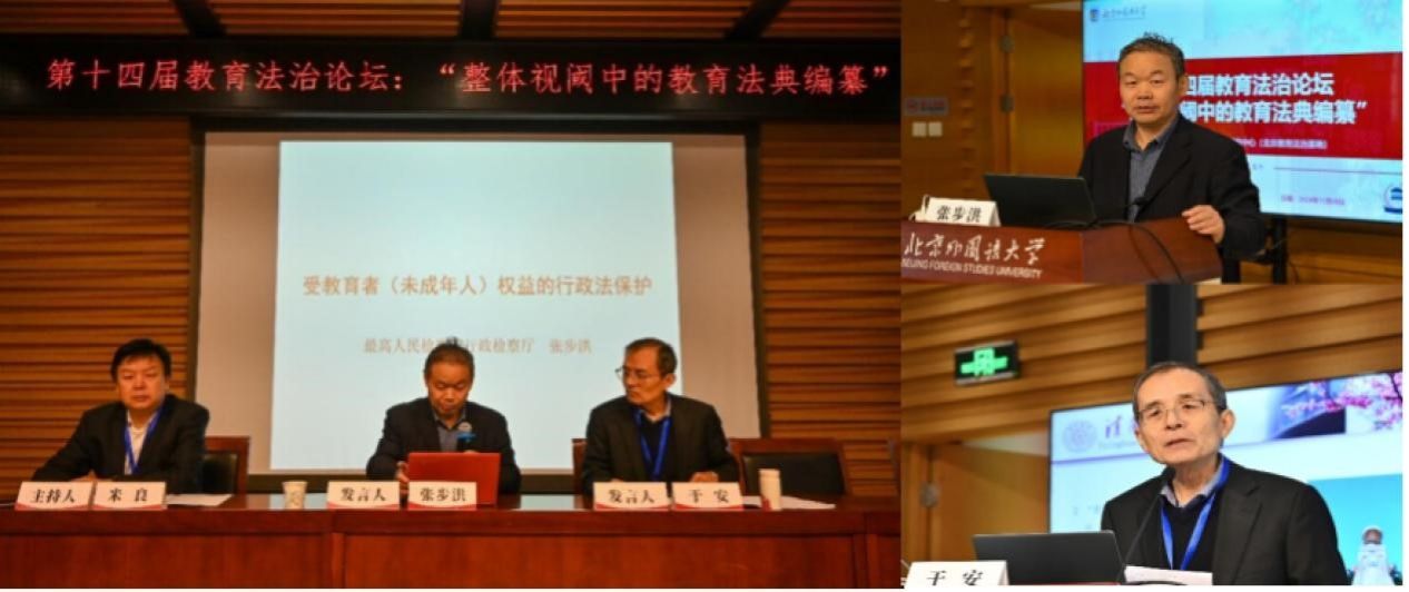 2024年11月9日,我校中外教育法研究中心(北京教育法治基地)主办的第十四届教育法治论坛召开。本届论坛主题为“整体视阈中的教育法典编纂”,会议采用线上线下相结合的形式。来自最高人民检察院、北京市教育委员会、北京青少年法律援助与研究中心、北京市正见永申律师事务所等实务部门专家,以及清华大学、中国人民大学、中国政法大学、对外经济贸易大学、首都师范大学、首都经济贸易大学、华东政法大学、南开大学、东南大学、北京警察学院、河海大学、江汉大学和我校beat365中国唯一官方网站、国际教育学院的专家学者和在校研究生参加会议。