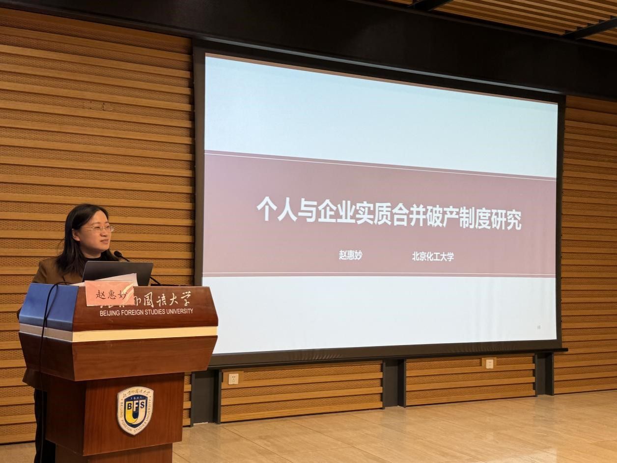 北京化工大学赵惠妙教授以“个人与企业实质合并破产问题研究”为题,对个人与企业实质合并破产的相关问题进行了系统梳理和分析,分析了个人与企业实质合并破产的必要性与可行性,提议建立广义上的实质合并规则,将实质合并规则的主体范围扩展为个人、合伙企业、公司,构建个人与企业实质合并破产制度,以回应实践难题。