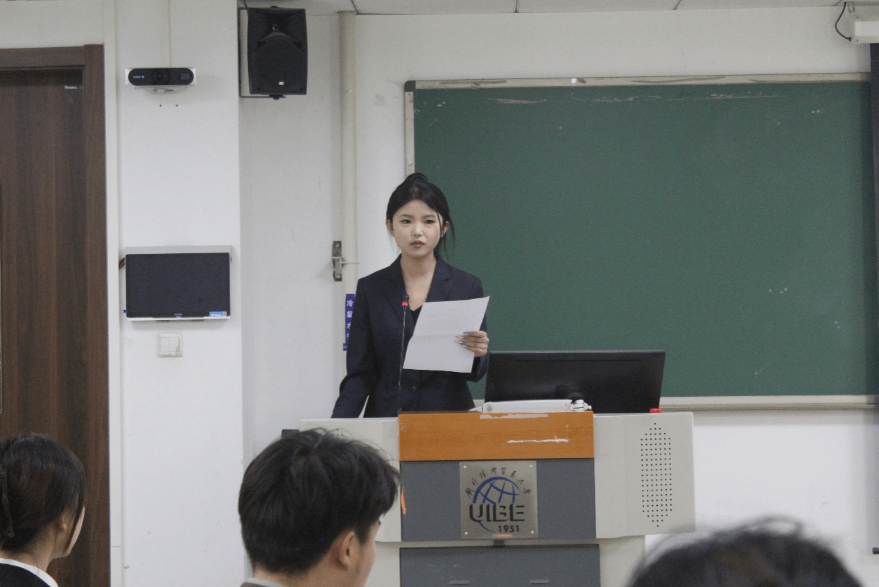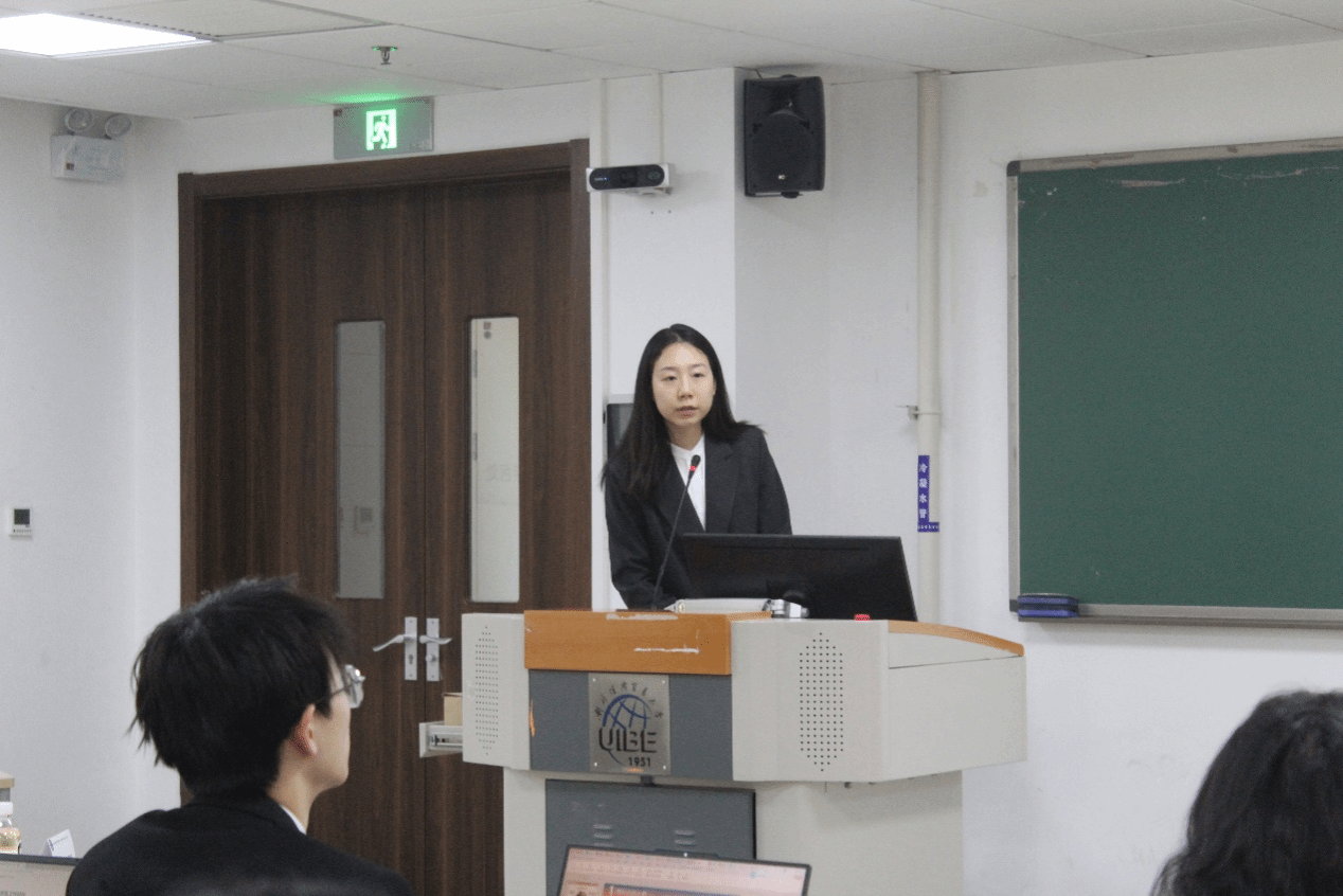 随后的发言环节中,十二所高校代表围绕组织建设、实践育人、品牌活动等内容展开深度分享。beat365官网研究生会主席团成员孟凡怡以“以‘职引’讲座与学术论坛搭建科研创新平台”为题分享“青创赋能”的北外经验。首先,介绍了beat365官网学生组织的基本架构与组织建设情况。其次,着重展示beat365官网研究生会在学术科研与创业创新方面的亮点学生活动,如“就业领航”系列讲座、“繁星计划”校友导师聘任、大型学术论坛协办、写作指导会等。最后,表达了对加强院校间合作的期待并展望法科学生活动不断优化。