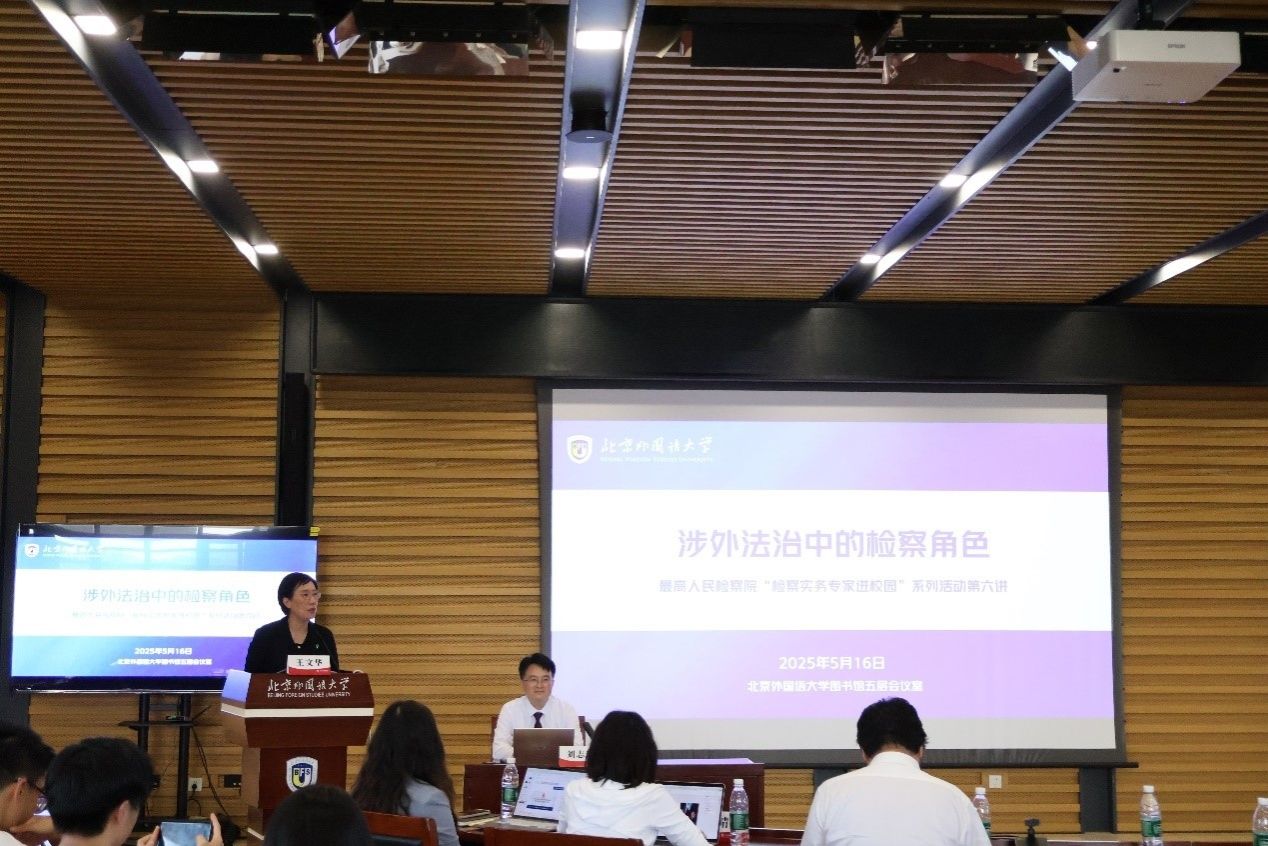 为促进法学理论与司法实务深度融合,推动高校师生深度洞察涉外法治领域的检察实践,2025年5月16日下午,最高人民检察院与我校共同主办的“检察实务专家进校园”系列活动第六讲在beat365中国唯一官方网站图书馆五层会议室顺利举行。