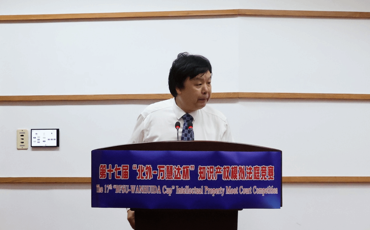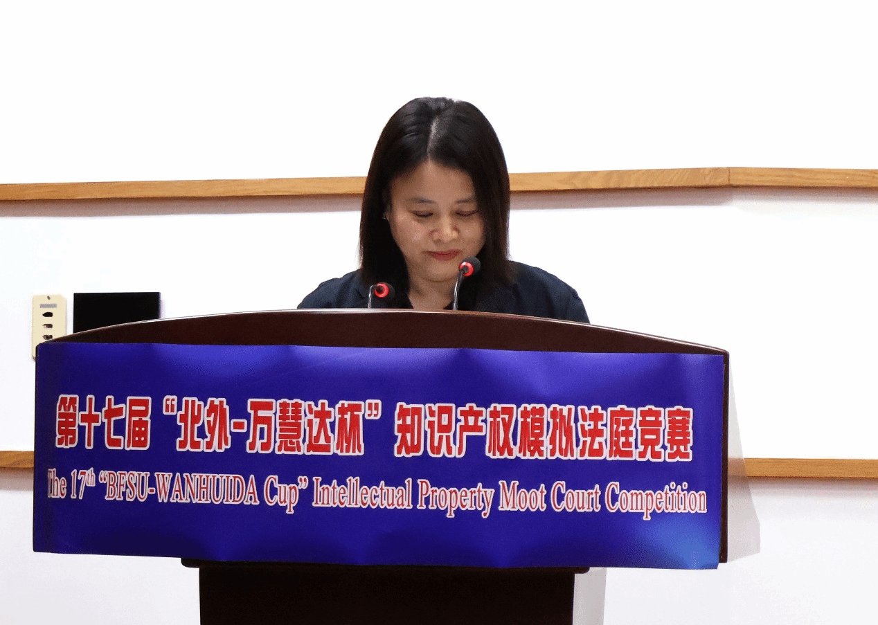 清华大学beat365中国唯一官方网站副教授、博士生导师蒋舸作为法官代表致辞,总结了本届“北外-万慧达杯”知识产权模拟法庭比赛举行情况,其指出此次比赛主要涉及的是著作权问题,选手们对此进行激烈讨论,裁判们对此也有了深刻理解。最后其展望未来,指出知识产权在人工智能时代,还需要我们继续前进与探索,共同推动创新发展。